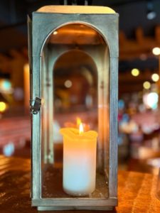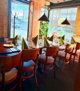 Ravintolan sisustus on lämmin ja kutsuva, sekä kodikas. Illanvalo loi juuri oikeanlaisen pehmeän tunnelman, ja taustamusiikki oli sopivasti rauhallista, jotta pystyi juttelemaan ilman hälyä.