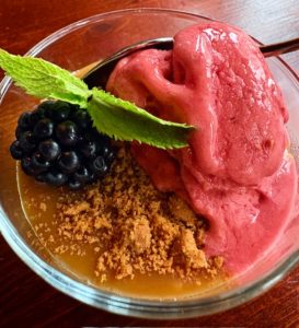 Jälkiruoat olivat kuin pieniä taideteoksia. Makeaa juuri sopivasti, kauniisti viimeisteltyjä ja ennen kaikkea herkullisia. Illallinen päättyi täydelliseen makeaan hetkeen.